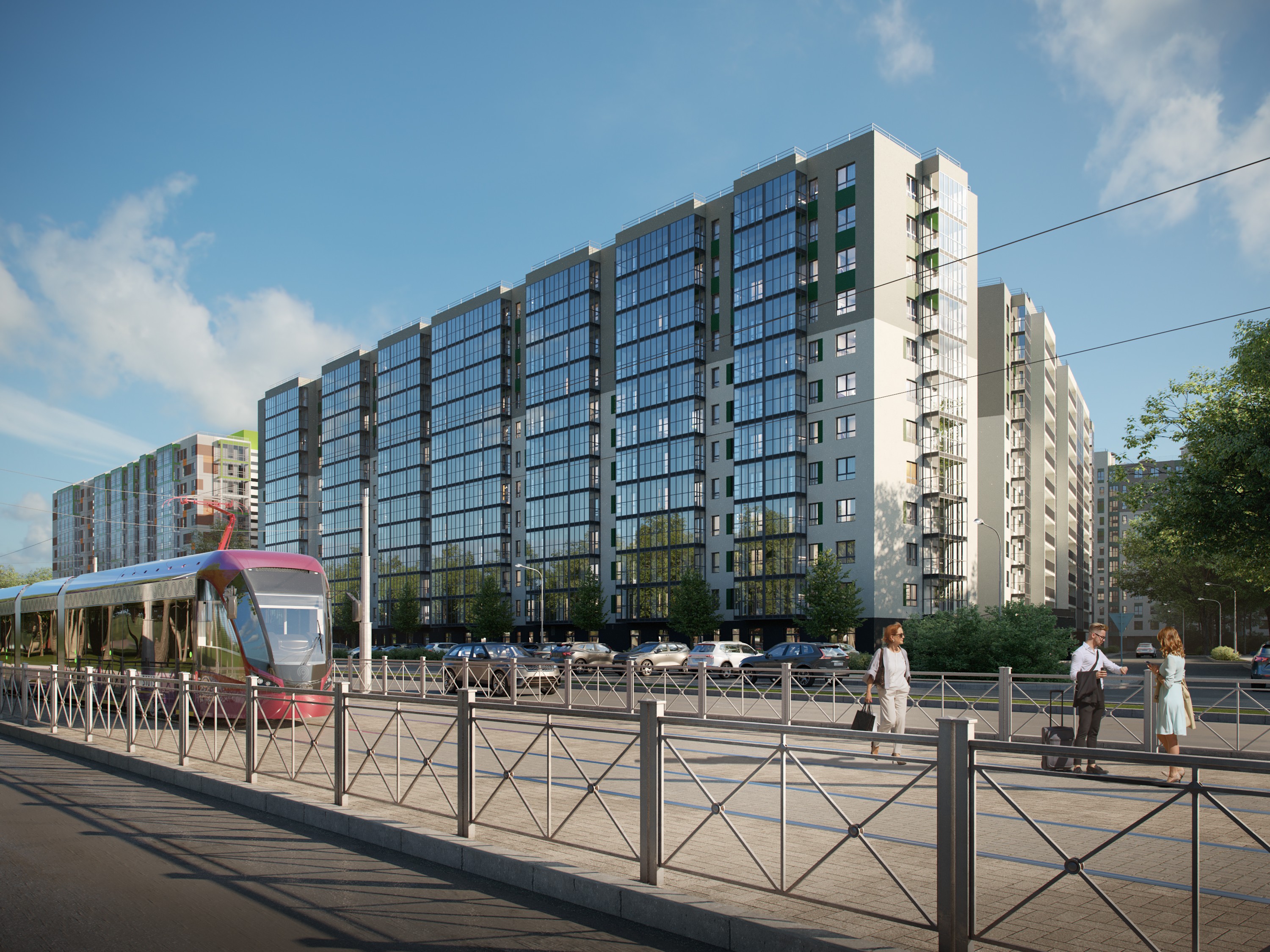 В АЭРОСИТИ только 10-12 этажные дома. Каждый жилой комплекс — яркая индивидуальность, но в то же время все проекты объединены идеями удобства и безопасности. В квартале мы предусмотрели безопасные закрытые дворы «без машин», безбарьерную среду со входами в парадные с уровня земли, современные лифты со спуском в подземный паркинг, помещения для велосипедов и колясок.