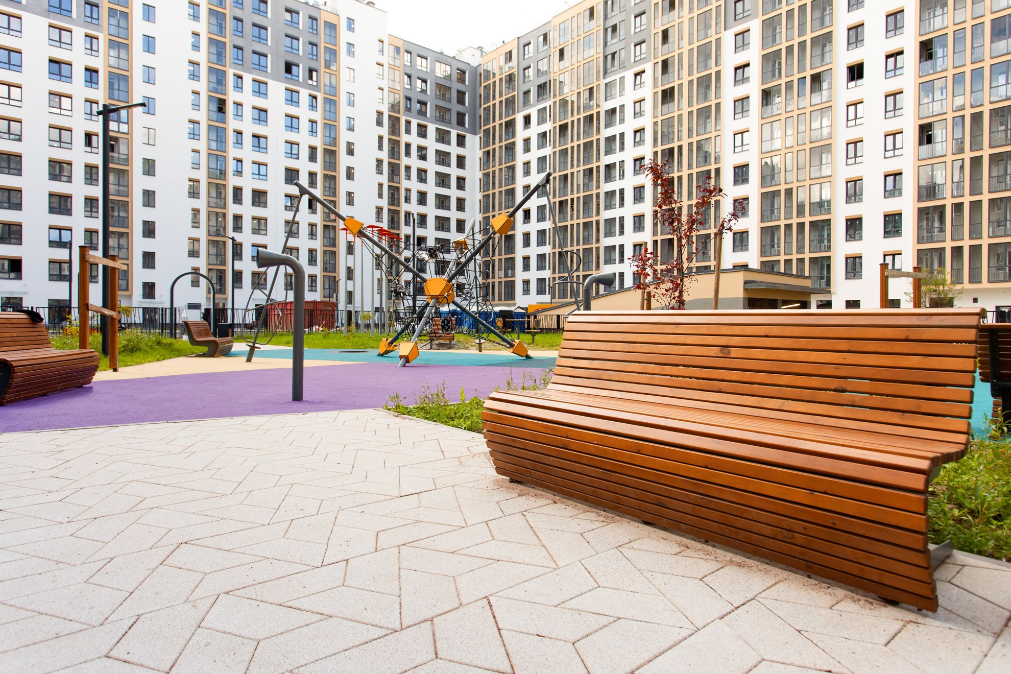 Здесь расположены уютные зоны отдыха, закрытая детская площадка и министадион с тренажерами. По периметру здания, в холлах и лифтах ведется видеонаблюдение и охрана.