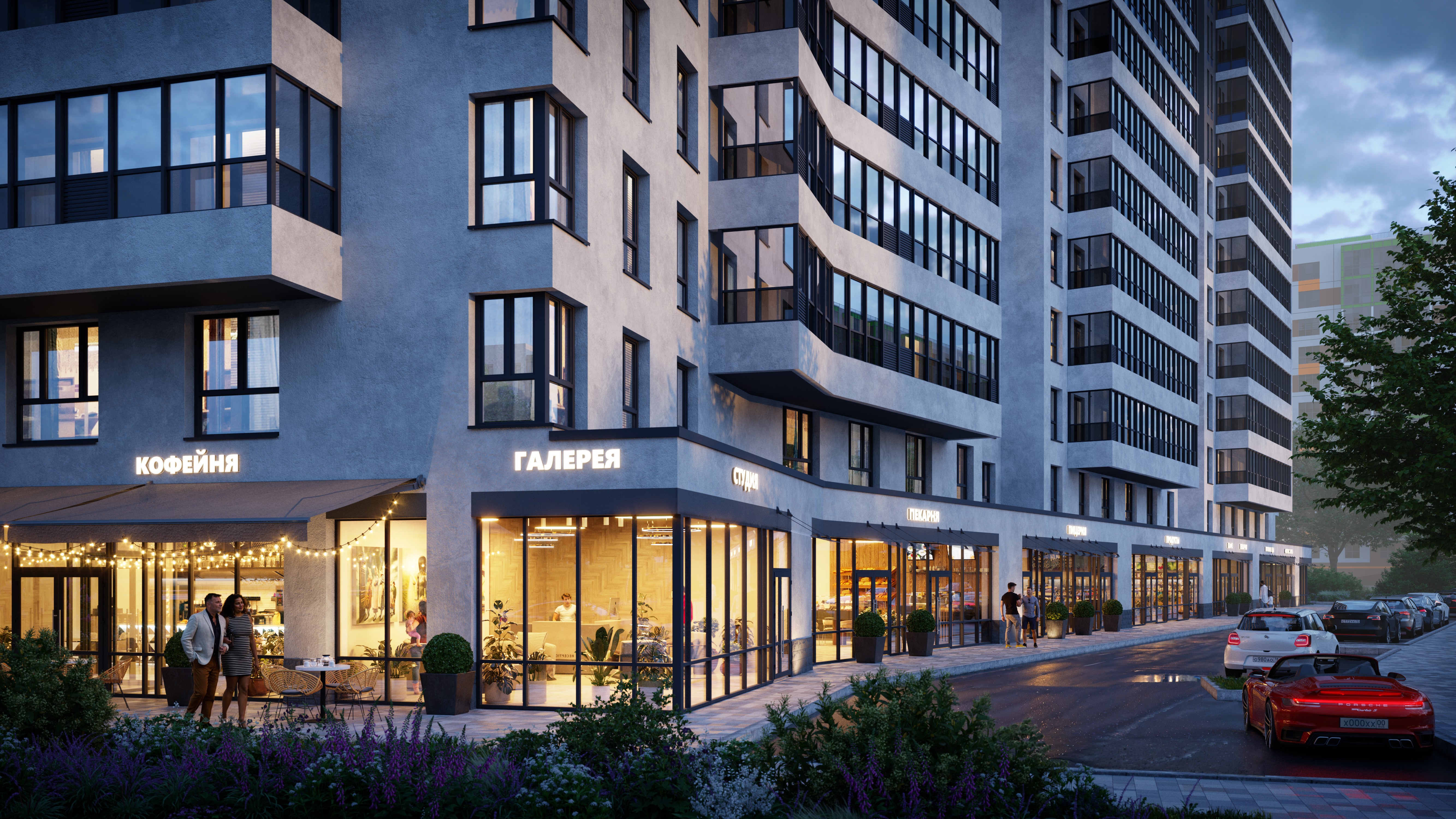 Дом находится в уже освоенной части квартала, поэтому вся коммерческая инфраструктура работает в торговых галереях на 1‐х этажах расположенных по соседству зданий.