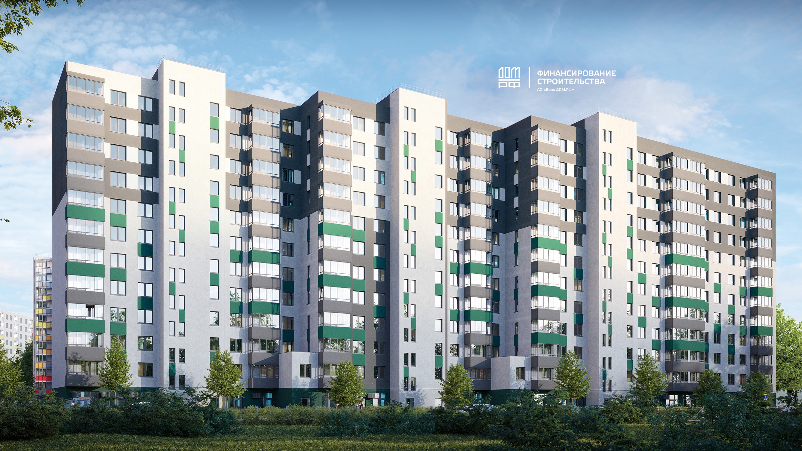 Архитектурный облик дома отличается сдержанной элегантностью. Фасады в бело‐серых тонах с зелеными акцентами облицованы декоративной штукатуркой под покраску. Цоколь, отделанный искусственным фактурным камнем темных оттенков, придает зданию основательность. Панорамное остекление балконов и лоджий обеспечивает прекрасный вид и обилие света.